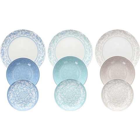 Étkészlet - 18 darabos készlet, a készlet tartalma 6 lapos tányér, 6 mély tányér, 6 desszert tányér, kerek alakú, anyaga porcelán, mintás, mosogatógépbe és mikrohullámú sütőbe helyezhető Egy minőségi étkészlet minden háztartás fontos része. A remek Tognana étkezőkészlet minden alkalommal garantálja a kellemes étkezést. Az étkészlet tartalma lapos tányér, mélytányér és desszertes tányé
