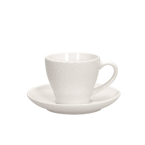 Csésze készlet capuccino és tea felszolgálására - csészealjjal, anyaga porcelán, űrtartalma 210 ml, alkalmas mosogatógépbe és mikrohullámú sütőbe, fehér kivitel, 12 db a csomagban A Tognana MARGARET egy egyedi és teljesen eredeti kialakítású teáscsészékből álló készletet mutat be. A 6 csészéből és csészealjból álló készlet minőségi porcelánból készült. A 210 ml-es csészék és a
