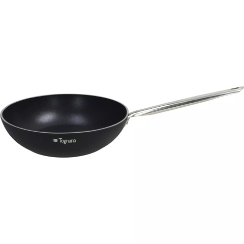 Tognana Pro-Diamond wok serpenyő 30,5 cm átmérővel, 90 mm magassággal és 580 mm hosszúsággal. Alumíniumból készült, ideális ázsiai ételek elkészítéséhez és gyors pirításhoz. A Tognana Pro-Diamond fekete wok serpenyő remek választás minden konyhába.