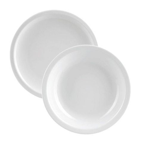 12 részes Capri Tognana tányérkészlet. A készlet a következőket tartalmazza: 6 x sekély tányér, 6 x mélytányér. Szeretné megújítani vagy feltölteni az étkészletét? Kezdje a fehér porcelánból készült Capri Tognana sorozattal. Egyszerű, elegáns stílus, amely minden háztartásba beleillik. Mosogatógépben mosható. A készlet tartalmazza: 6 x 221117111, 6 x 221117114.