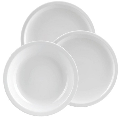 18 részes Capri Tognana tányérkészlet. A készlet a következőket tartalmazza: 6 x sekély tányér, 6 x mélytányér és 6 x desszertes tányér. Szeretné megújítani vagy feltölteni az étkészletét? Kezdje a fehér porcelánból készült Capri Tognana sorozattal. Egyszerű, elegáns stílus, amely minden háztartásba beleillik. Mosogatógépben mosható. A készlet tartalmazza: 6 x 221117111, 6 x 221117114 és 6 x 221117112.