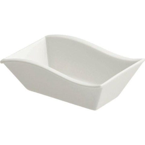 A Tognana Party Mini téglalap alakú tálka hullámos peremmel, méretei: 12x8x4,5 cm. A fehér porcelán tálka ideális ünnepségekhez és születésnapi partikhoz. Minden konyhába alkalmas.