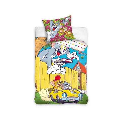 Tom and Jerry, Tom és Jerry Yellow Car ágyneműhuzat Mérete: Párnahuzat: 70×90 cm Takaróhuzat: 140×200cm Anyaga:100% pamut