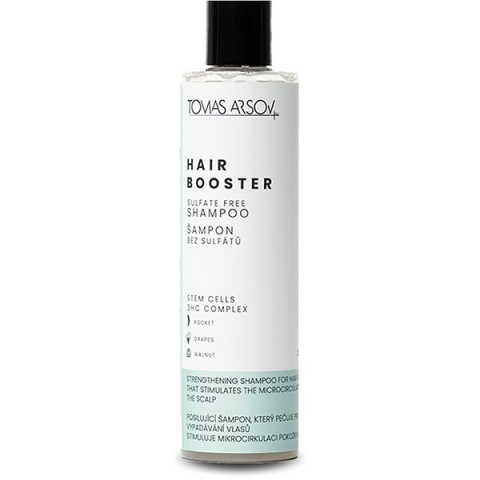 Sampon - hagyományos sampon, sérült, öregedő, őszülő, gyenge és ritkuló hajra ajánlott, hajhullás elleni, növekedést serkentő, tápláló, mélytisztító, hajvédő és erősítő hatás, parabénmentes, szilikonmentes és szulfátmentes, 250 ml-es kiszerelésben, professzionális kozmetikum, luxus kozmetikum A TOMAS ARSOV Hair Booster sampon kíméletesen mossa a hajat és a fejbőrt, és megelőzi a hajhullást. Serkenti a fejbőr szükséges vérkeringését, és biztosítja a