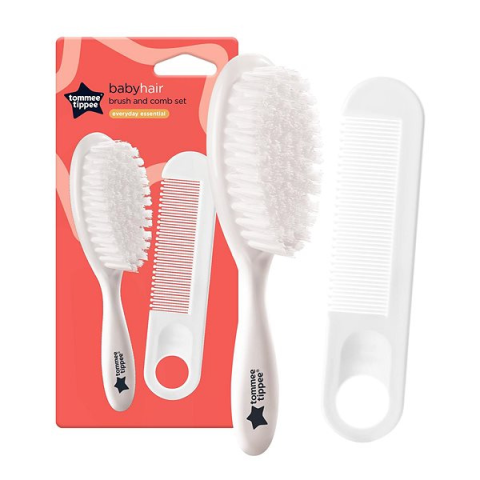 Baba kezdőcsomag - a készlet tartalma: kefe és fésű, hajhúzást és összegabalyodást csökkentő puha sörték, újszülöttkortól alkalmas, BPA-mentes Ez a Tommee Tippee babakészlet egy kefét és fésűt tartalmaz. Az eszközök puhák és gyengédek, BPA-mentesek, és kifejezetten a baba érzékeny hajához és bőréhez lettek tervezve. A Tommee Tippee kefe spec