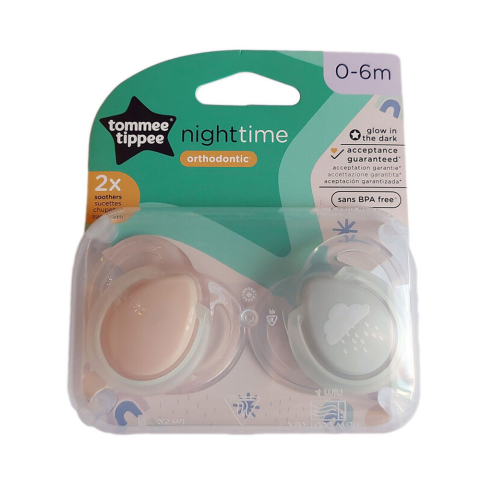 1 kép Tommee Tippee játszócumi CTN Night 2 db 0-6 hó pasztell púder-szürke