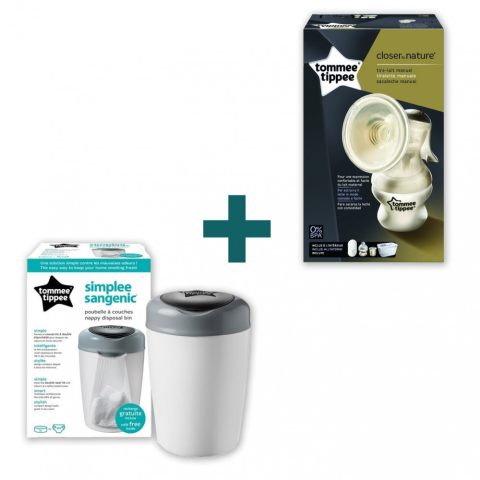 Tommee Tippee Tommee Tippee Kézi mellszívó+Sangenic pelenkacsomagoló vödör szürke