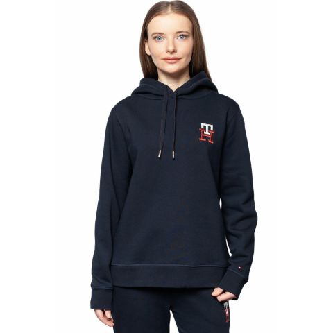 1 kép Tommy Hilfiger női pulóver húzózsinórral és hímzett logóval, sötétkék, L INTL