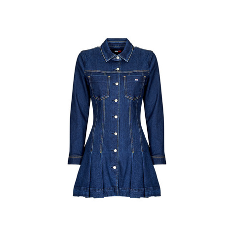 Tommy Jeans Rövid ruhák DENIM PLEATED TRUCKER DRESS Tengerész Kapható női méretben. EU XL