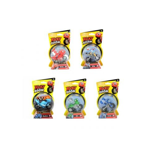 Megérkeztek a Ricky Zoom sorozat főszereplői! A rajzfilm száguldó kétkerekűi figura formában. A figurák első kereke kanyarodik, a vázak pedig kompatibilisek kiegészítőkkel. Az ötféle figura külön-külön kapható.