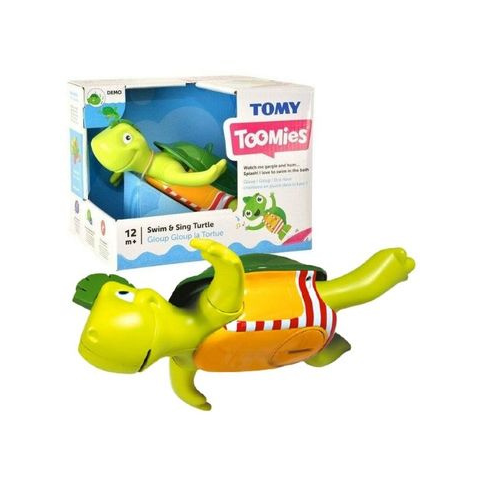 Éneklő teknős? Naná! A Tomy Tommies éneklő, úszó teknőse a gyerekek kedvenc fürdőjátékává válhat, nemcsak a fürdőkádban, de akár a medencében is. Használata egyszerű: csak fel kell húzni a teknőst az oldalán található tekerő segítségével, hogy dalolászva úszni kezdjen. Na de merre kanyarodik? Hova indul? A gyerekek követhetik a kis teki útját, bármerre is vezessen az. A játék jó választás a fürdést kevésbé kedvelő gyerekek vízbe csalogatásához.