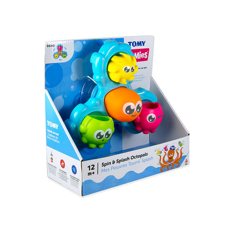 A Tomy Tommies pancsoló polipok élménnyé teszik a fürdést. A játék a tapadókorongok segítségével a fürdőkádra vagy a csempére tehető. Ahogy a gyerekek vizet locsolnak a játékra, a polipok elkezdenek forogni és mint egy vízimalom, továbbítják a vizet. A játék amellett, hogy fejleszti a gyerekek finommotorikáját, elősegíti, hogy a fürdésidő szórakoztatóan teljen el.Csomagolás mérete: kb. 21 x 21 x 9,5 cm