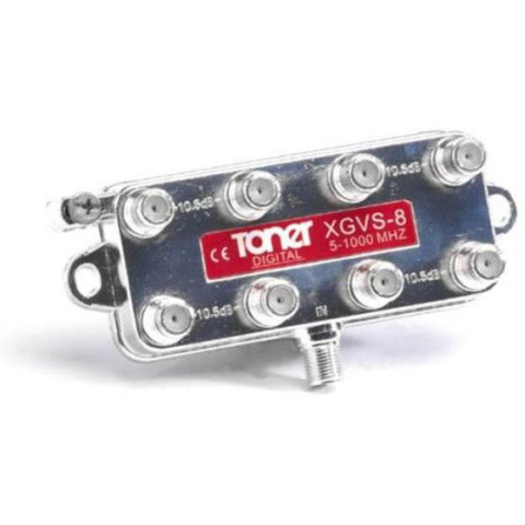 Elosztó - antenna elosztó, 8 kimenet, 5-1000MHz, csillapítás: 11 dB, F csatlakozók Minőség hub XGVS Toner-8, amely fel van szerelve a ónozott öntés. Ez kiváló árnyékolás, 8 függőleges F típusú csatlakozó és korrózióálló.Ha egy pontos és jól működő antenna elosztót keres, akkor megta