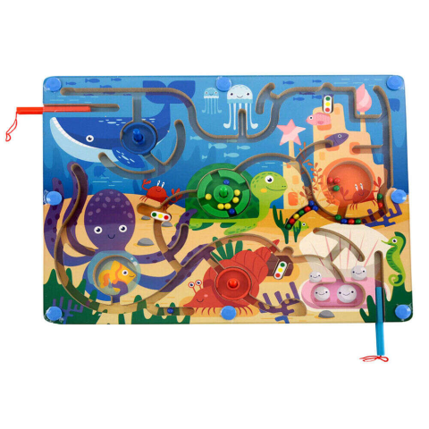 A szem-kéz koordináció, a finom kézmozgás, logikus gondolkodás és a türelem fejlesztésére alkalmas fából készült, golyóvezető játék.
