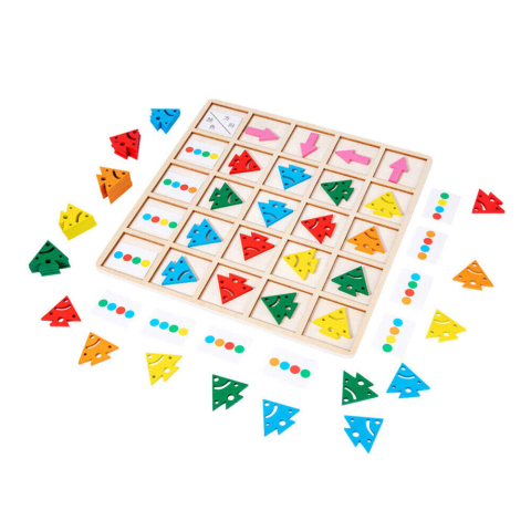 Szórakoztató, fejlesztő játék, mely által a gyermekek megismerkedhetnek az irányokkal, és fejlődhet a térbeli tájékozódási képességük. Emellett a színekkel és a sorrendiséggel is ismerkednek a játék során, és fejlődik a szem-kéz koordinációjuk.Tartalma: 1 db játéktér28 db formaalátétlapokirányjelzőkJáték alapanyaga: fa.Ajánlott életkor: 3 éves kortól.