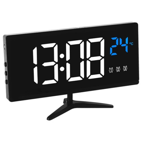 - Méret: 16.3 x 9.8 x 4 cm - Súly: 156 g - Formátum: 12/24 órás - LED kijelző - Hőmérséklet kijelzés °C/°F - Hónap, nap, óra és perc kijelzés - 3 ébresztőóra funkció - Szundi funkció - Memória funk...