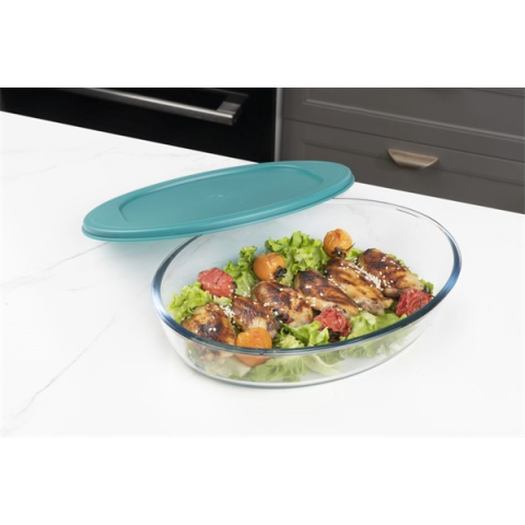TOO üveg ovális ételtároló, műanyag tetővel 1600 ml-es (KT-98) (KT-98)