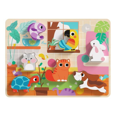 A formakirakó egy vidám, szórakoztató és nem utolsó sorban remek fejlesztő játék a legkisebbek számára.A piciknek nincs más dolguk, mint megragadni az aranyos, színes háziállatokat, majd a helyükre illeszteni. Ebben a szettben 7 darab háziállat található, így a gyerekek játék közben velük is megismerkedhetnek. Minden állatnak külön helye van, azonban rajzok is segítik a gyerekeket, hova tegyék a kezükben lévő figurát.A játék remekül fejleszti a kézügyesség
