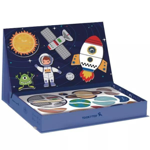 A Tooky Toy mágneses kirakójával a világűr különböző részei építhetők meg, de az egyes darabokat a gyerekek akár kombinálhatják is, hogy egyedi végeredményt kapjanak. A kicsiknek nincs más dolguk, mint ráhelyezni a megfelelő darabokat a mágneses lapra.A csomagban összesen 12 darab kártya található. A játék praktikus dobozban található, amelybe minden darab könnyedén belefér. A játék remekül fejleszti a kreativitást, a kézügyességet, a szem-kéz koordináci