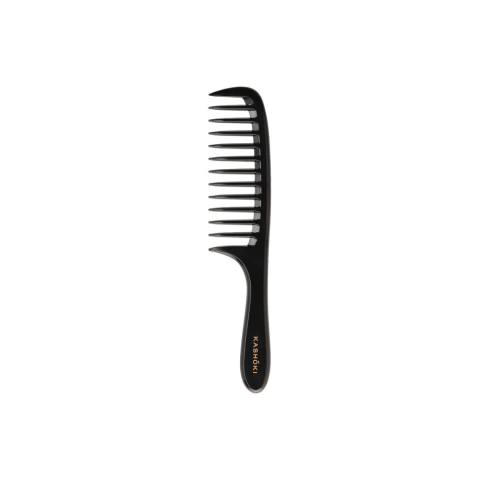 A Kashōki Misaki fésű vastag és hosszú haj fésülésére és rendezésére szolgál. A szélesen elhelyezett fogak gyengéd és alapos kibontást biztosítanak. A fésű kiválóan alkalmas hajápoló termékek elosztására is. Az ergonomikus fogantyú kényelmes használatot t