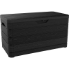 Kerti tárolódoboz - műanyag, lezárási lehetőség, űrtartalma 410 l, mérete 63,5 × 60,5 cm (Ma×Mé), műrattan, szürke kivitel Az ismert, 410 l nagyságú TOOMAX kültéri tároló doboz tágas tárolóhelyének köszönhetően segít rendben tartani kertedet. A műanyag kialakítást kisebb tömeg és könnyű karbantartás jellemzi. Zárómechaniz