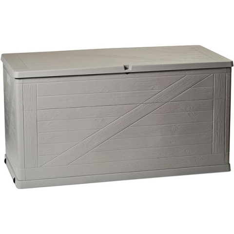 Kerti tárolódoboz - műanyag, űrtartalma 420 l, ellenálló UV sugárzás és időjárási hatások ellen, mérete 63 × 120 × 56 cm (Ma×Sz×Mé), fa imitáció, szürke kivitel, tömege 9000 g A profi, 420 l űrtartalommal rendelkező TOOMAX kerti tároló láda ideális megoldás a kerti szerszámok és egyéb apróságok biztonságos tárolására, mert rengeteg helyet kínál. A műanyag szerkezet könnyen