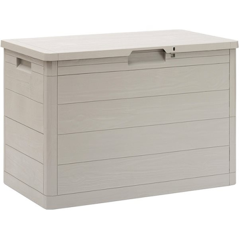 Kerti tárolódoboz - műanyag, lezárási lehetőség, űrtartalma 160 l, ellenálló UV sugárzás és időjárási hatások ellen, mérete 53 × 77,5 × 44,5 cm (Ma×Sz×Mé), fa imitáció, szürke kivitel, tömege 4500 g A hasznos, 160 l nagyságú TOOMAX kerti tároló láda minden kerti eszközt biztonságosan egy helyen tárol. Műanyag felépítésének köszönhetően könnyű és könnyen karbantartható. Időjárásálló, amely hosszú