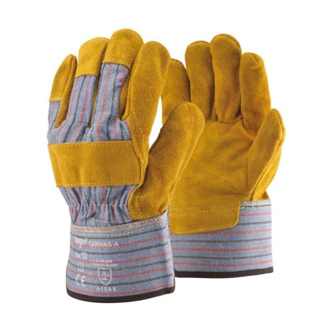 1 kép TOP CANVAS-A védőkesztyű, "A" minőségű hasított marhabőr, pamut kézhát és tenyérbélés