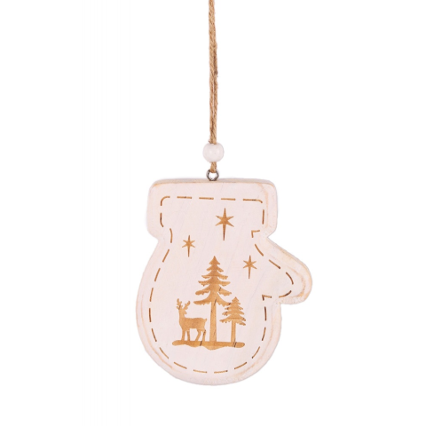 TOP HAUS Fa kesztyű akasztós fenyő-rénszarvas natúr karácsonyi dekoráció 1 kép