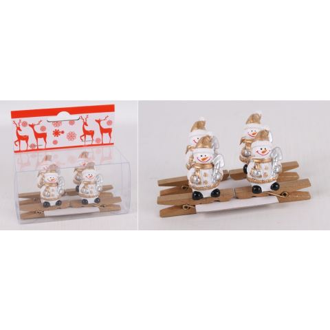 TOP HAUS Hóember csipeszes arany-fehér s/4 karácsonyi dekoráció 1 kép