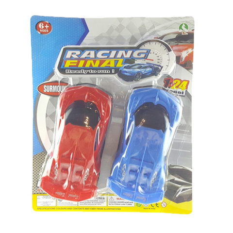 Két szuper gyors autó egy csomagban. Egy kék és egy piros autó a nagy versenyekre. Autók mérete: 18 cm. 3 éves kortól ajánljuk.