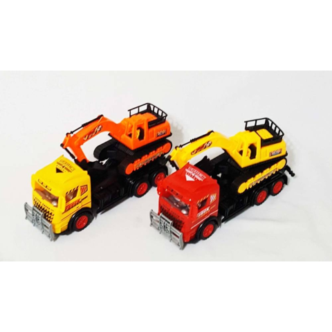 Mérete: 10 cm Anyaga: műanyag 3 éves kor felett! 2az1ben Lánctalpas munkagépet szállító kamion. Állj a helyszínre tolass le a markolóval és már kezdődhet is a munka!