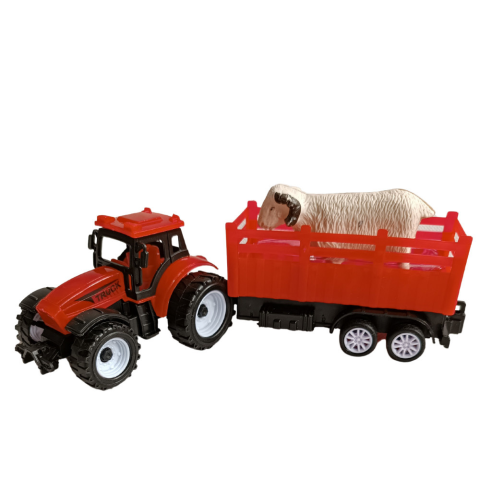 Traktor utánfutóval és állattal. Mérete: 21 x 5 x 6 cm