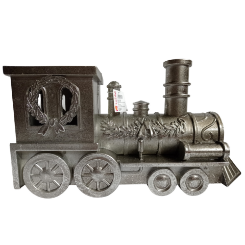 Mozdony dekoráció, ezüst színben. Mérete: 19,5 cm