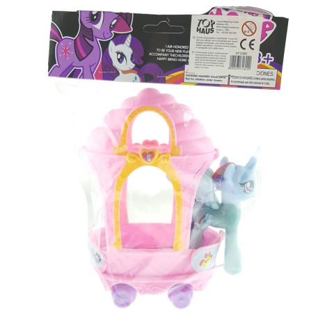 Ez a kis barátságos póni unikornis sok örömet okozhat minden kislánynak a szuper hintójával. Mérete: 17 cm Anyaga: műanyag
