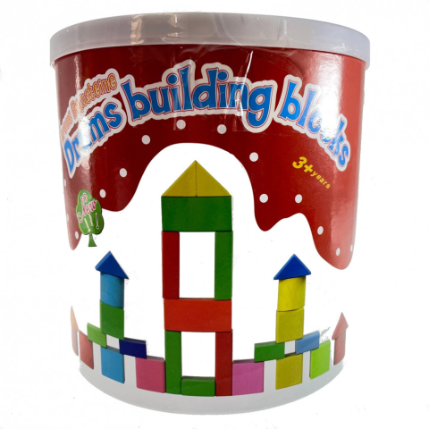 Doboz mérete: 18x18cm 40db-os színes fakockákból álló építőjáték.