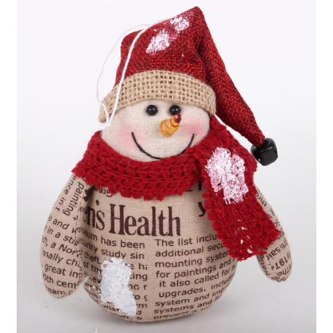 TOP HAUS Textil hóember újság mintás 15cm bordó-barna karácsonyi dekoráció árgrafikon