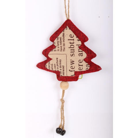 TOP HAUS Textil karácsonyfa újság mintás 15cm bordó-barna karácsonyi dekoráció 1 kép