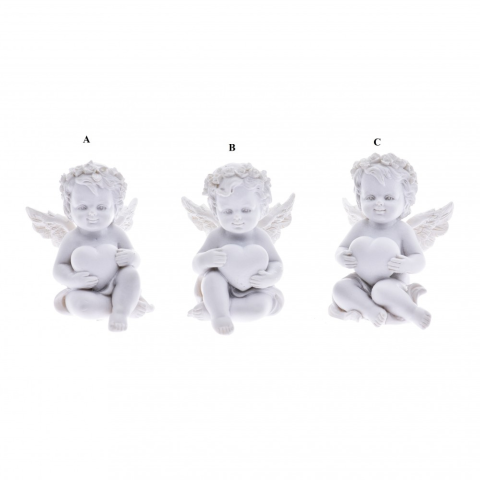 Angyal szívvel, 4,5x 5,3x 6,3cm, fehér.