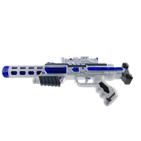 Vagány kinézetű űrfegyver, amely a ravasz meghúzására lövés hangot ad ki. Anyaga: Műanyag Mérete: 45,5x22,5x55 cm