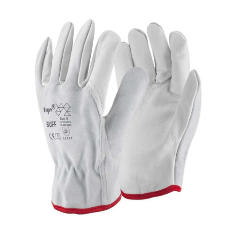 1 kép TOP Kesztyű munkavédelmi bivalybőr gumírozott mandzsettával fehér, 10