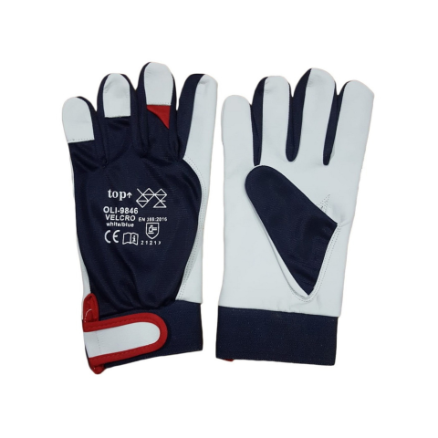 Egy minőségi munkavédelmi kesztyű, mely a tenyér-és köröm résznél bőr megerősítést kapott.