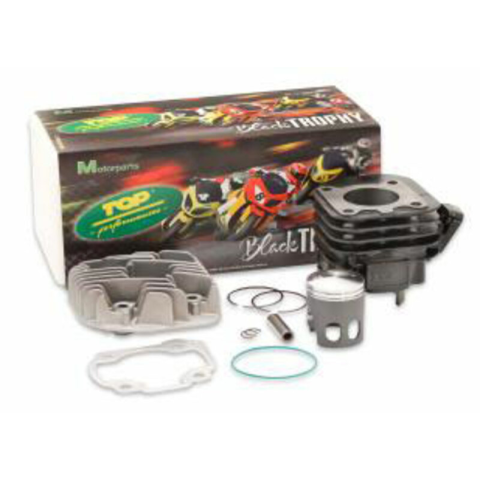 A TOP Performance nem más, mint a Minarelli fejlesztési részlege, amelyet híres a megbízhatóságáról és a 2 ütemű motoralkatrészek teljesítményéről.- Fekete trófeás nagy teljesítményű kínálat- 50cc henger-hengerfej dugattyú összeszerelés- optimális teljesítmény és megbízhatóság- 5 átviteli portos öntöttvas henger- nagy tömörítésű egyblokkos alumínium hengerfej- dupla gyűrűs dugattyú, 10mm csapágytű, molibdén-diszulfid kezelt- teljes tömítéskész