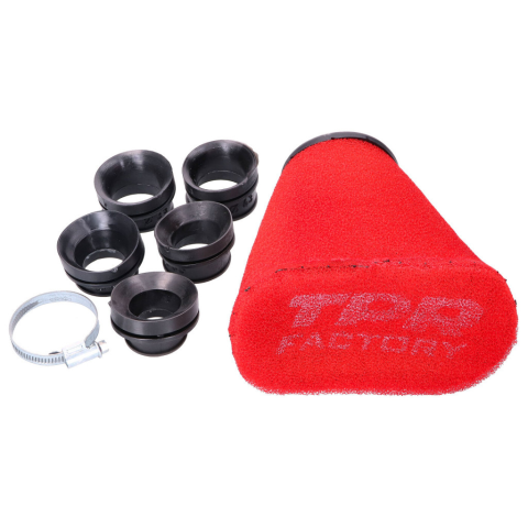 A Factory Racing Tuning légszűrője a Top Performances-től egy nagyobb szűrőtesttel rendelkezik a maximális légáramlás érdekében. Mint mindig a Top Performances-től, a legmagasabb minőségben és a legjobb szűrőhatással.A légszűrőt 6 különböző adapter gumi t