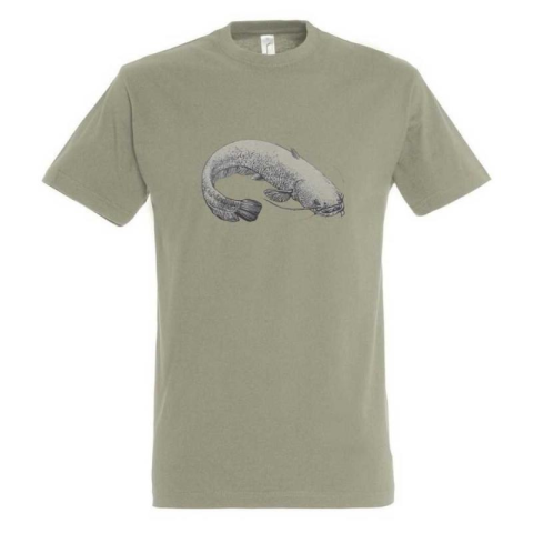 Kereknyakú horgász-vadász póló, harcsa mintával.Tulajdonságai:100% pamut.190 g/m2.Harcsa mintával.Khaki színben.Méret: S-2XLKiknek ajánljuk?Mindenkinek, akinek fontos a természetjárás, horgászat, halászat, túrázóknak is, akár ajándékba.