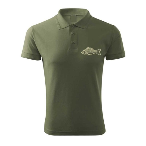 1 kép TOP Vadász póló (ponty hímzéssel) galléros TOP, khaki, L