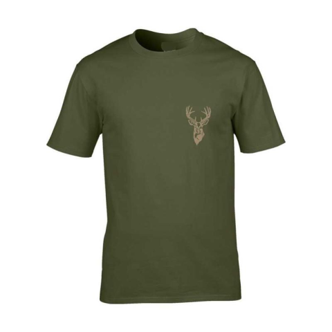 Kereknyakú vadászpóló, hímzett szarvas mintával.Tulajdonságai:100% pamut.Szarvas hímzéssel.Igényes kivitelezés.Katonai zöldesbarna.Méret: S-4XLKiknek ajánljuk?Minden olyan tevékenységhez, ahol az erdőjárás a munka része, de kiváló választás természetjáróknak, túrázóknak is, akár ajándékba.