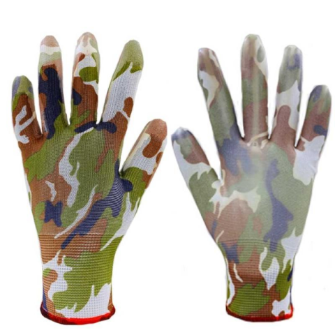 Egy klasszikus kertészkesztyű. Tenyéren PU mártott. Kedvező ár, kényelmes viselet.Tulajdonságai:Poliészter alapú.Tenyerén PU mártott védőkesztyű.Terepszínű.Szellőző kézhát.Széles méretszortiment.Gumírozott mandzsetta.EN 388:2016Védelmi szintek: 3121XX12 pár/csomag, 120 pár/karton (10 csomag)Méret: 7-10Kiknek ajánljuk?Kertészeti munkálatokhoz például virág ültetéshez is kiváló választás ez a PU mártott védőkesztyű.