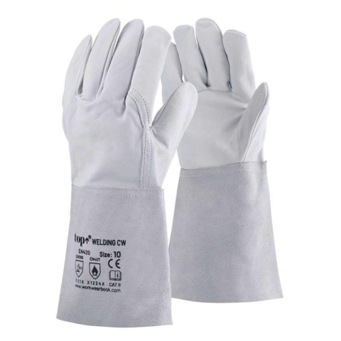 TOP WELDING CW hegesztőkesztyűTulajdonságok:Kézfej anyaga: marhabőrMandzsetta: 15 cm merevített bivalybőrMagas védelem olvadt fémfröccsenéssel szembenKiváló hővédelemCAT II.EN 420EN 388 (2121)EN 407: (X1224X)Méret: 10Javasolt felhasználási terület: száraz munkakörnyezet; kohászati munkák; ahol fontos a magas hővédelem.