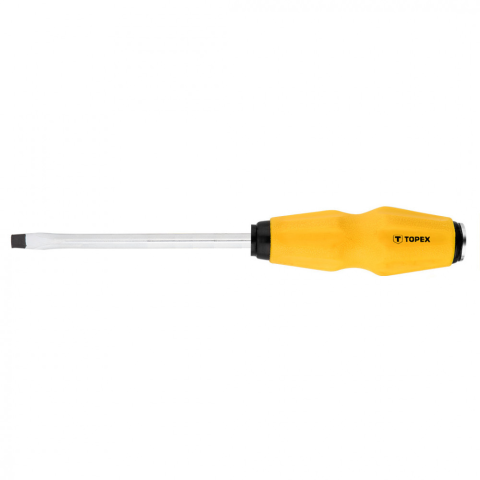 A TOPEX üthető lapos csavarhúzó besült, túl erősen meghúzott csavarok kilazítására, meghúzására szolgál. Hegye nagy ellenállóképességű, a szerszámnak hosszú élettartamot biztosító króm-vanádium acélból készült. A mágneses hegy megkönnyíti a szerszámmal vé